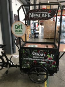 C.P. : Vous l’avez peut-être déjà croisé dans la rue : nous avons réalisé un triporteur pour Nescafé avec une structure en métal à l’avant. Un habillage sobre correspondant à la demande du client.